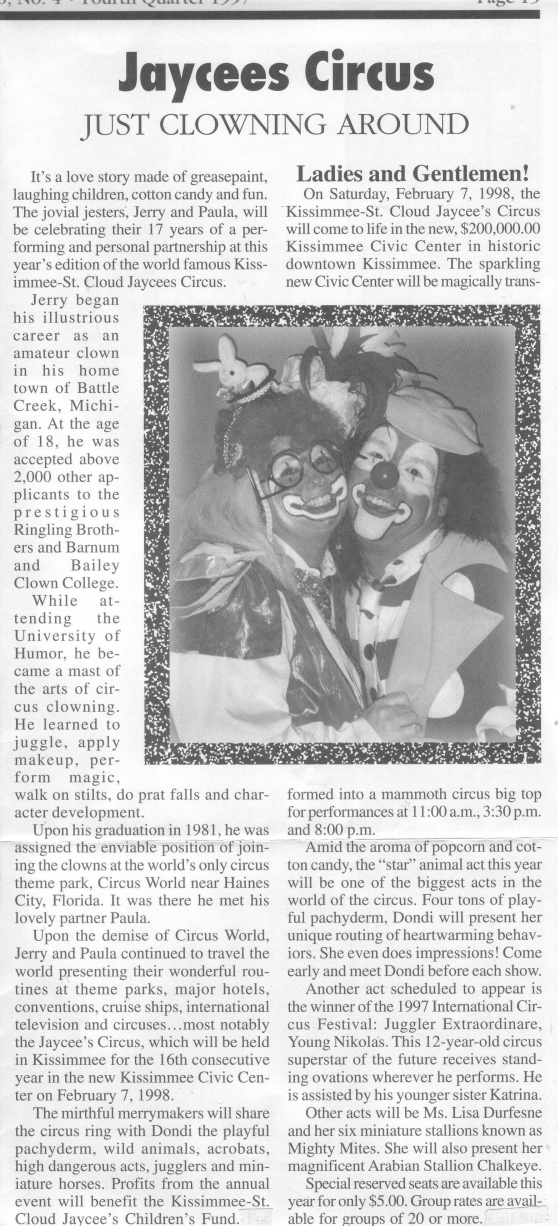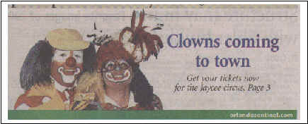 Orlando Sentinel Story : Clowns Coming to town